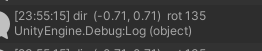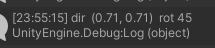 원래 설계했던대로 진행이 된다면 왼쪽 회전할 때 rotZ는 45가 나와야하고 오른쪽 회전할 때, rotZ는 -45가 나와야 된다.
