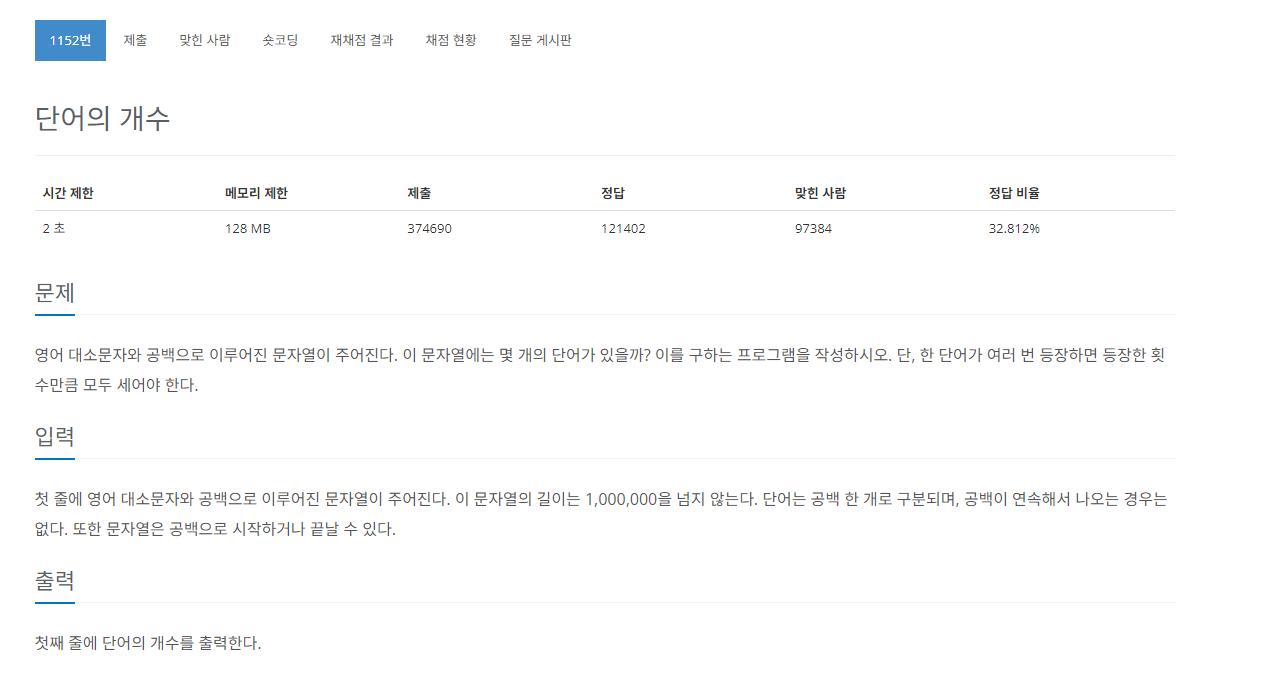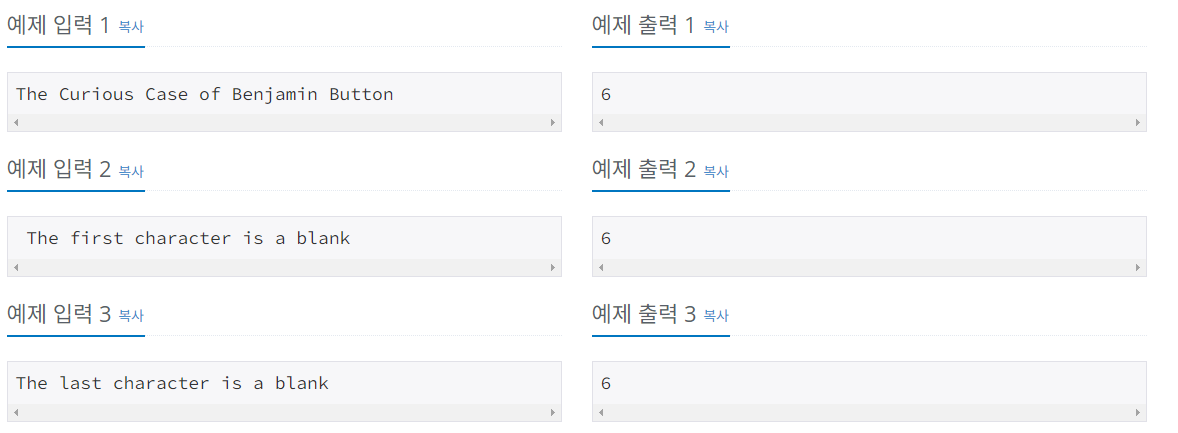 이 문제는 입력한 문자열에서 공백을 기준으로 단어의 갯수를 출력하는 문제이다.