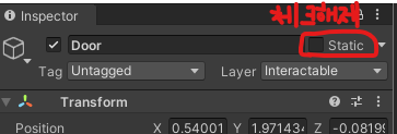 혹시나 문이 움직이지 않는다면 문 프리팹이 Static으로 묶여있지 않는지 확인해보면 된다.
