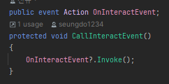 playerController.OnInteractEvent += curInteractable.OnInteract; // 상호작용 구독