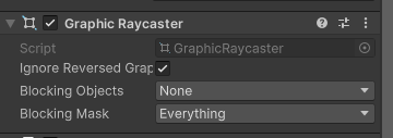 일단 이유는 기본적으로 Canvas를 생성하면 기본적으로 Graphic Raycaster가 붙어 있기 때문에 UI에는 해당 이벤트 함수들이 반응을 하는 것이다. ( Graphic Raycaster의 구성요소를 사용하여 이벤트를 호출)