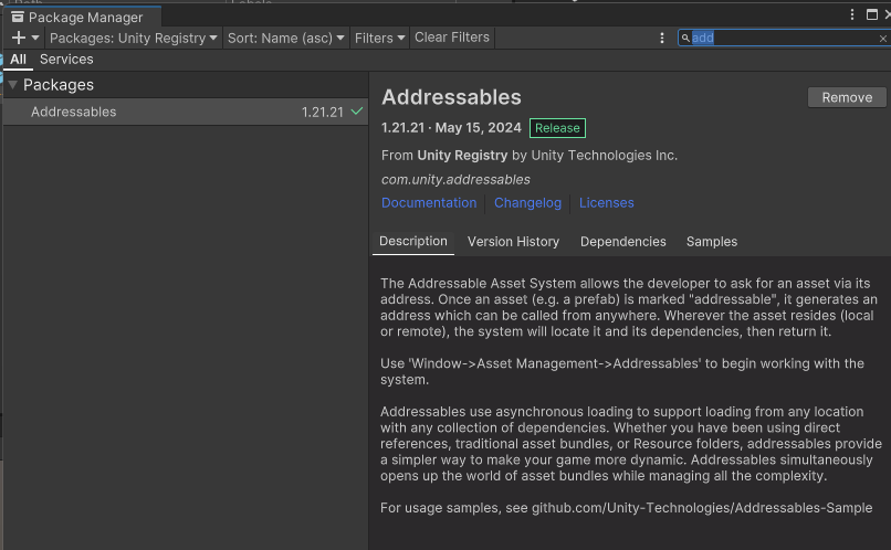 어드레서블 개요 | Addressables | 1.21.17
