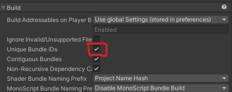 - 어드레서블 시스템에서 번들을 생성할 때, 각 번들에 고유한 식별자를 부여하는 기능이다.