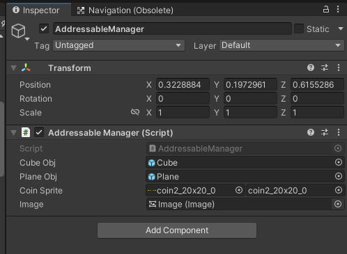 [SerializeField] private AssetReferenceGameObject cubeObj;