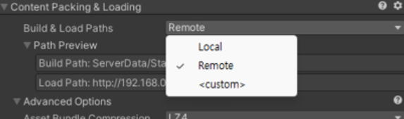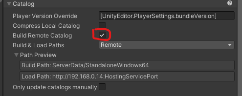 - 어드레서블 시스템에서 카탈로그 파일을 빌드하고, 이를 원격 서버에 업로드하여, 실행 중인 애플리케이션이 원격 서버에서 카탈로그를 불러올 수 있도록 하는 기능이다.