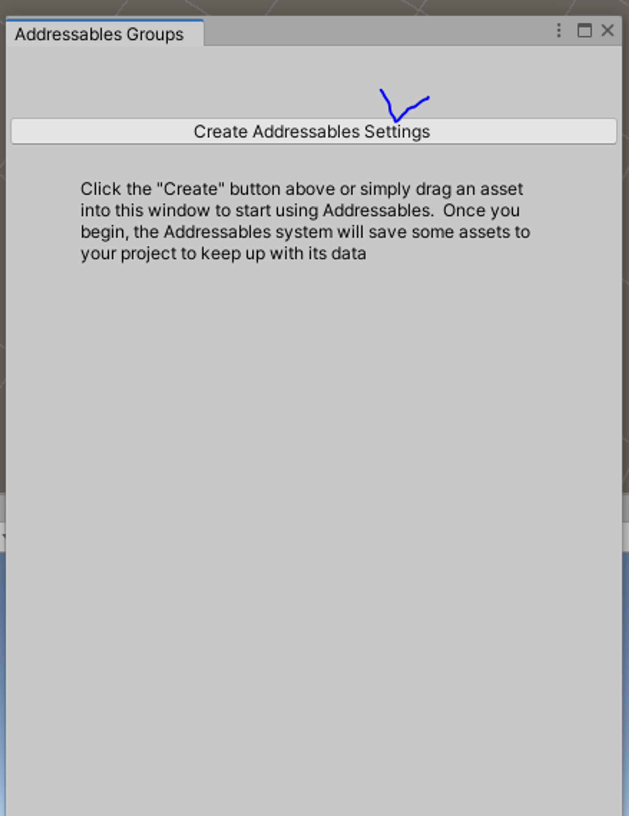 Addressable Groups 탭을 열고 Create Addressable Settings를 누른다.
