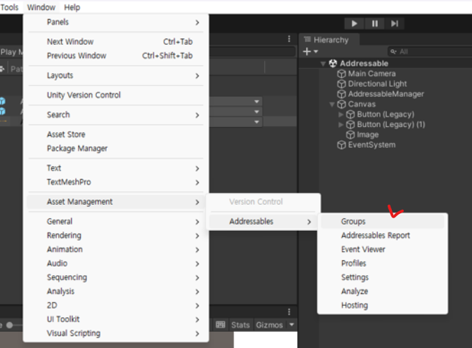 PackageManager에서 Addressable을 Install한다.