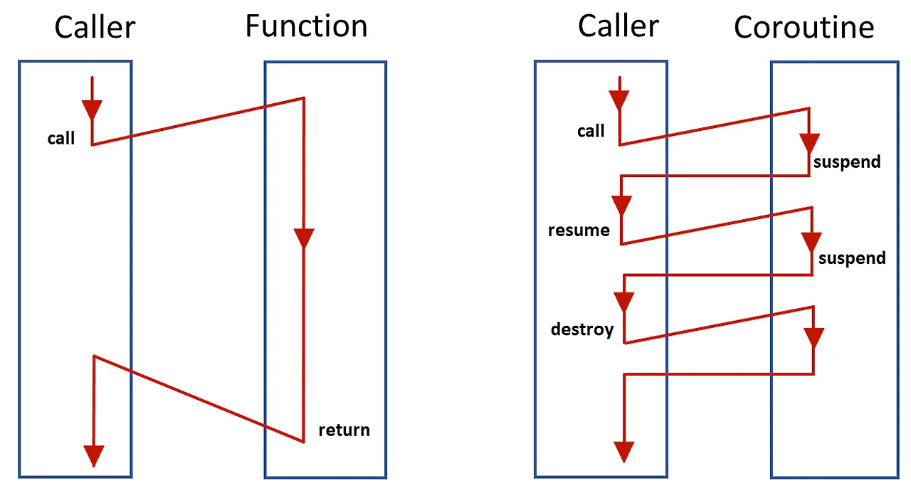 - Coroutine은 프레임 단위로 실행을 일시 중단하고 재개할 수 있으며 시간 초가 아닌 다양한 조건을 설정할 수 있다.