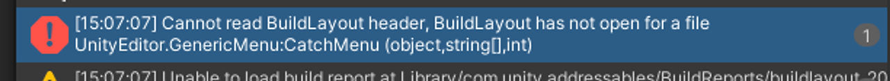 [Unity/C#] Addressable 빌드 오류 (Cannot read BuildLayout header ... ) 본문