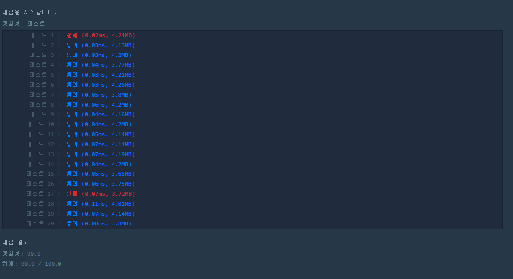 처음에는 문자열끼리 비교하려고 했지만, 일부 테스트 케이스가 실패했다.