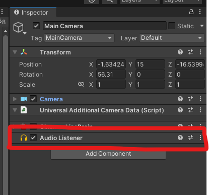 2. Main Camera에 Audio Listner 컴포넌트 확인