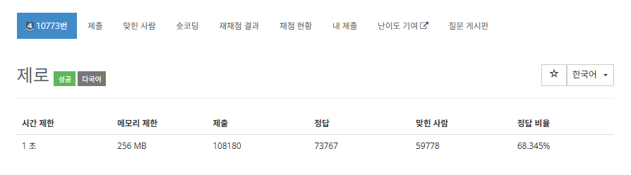 [백준] 10773번 제로 (C++) 본문