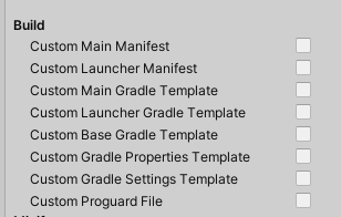 그래서 Build Settings/Player Setting/Publishing Setting에 있는 커스텀 빌드파일들을 체크해제하고