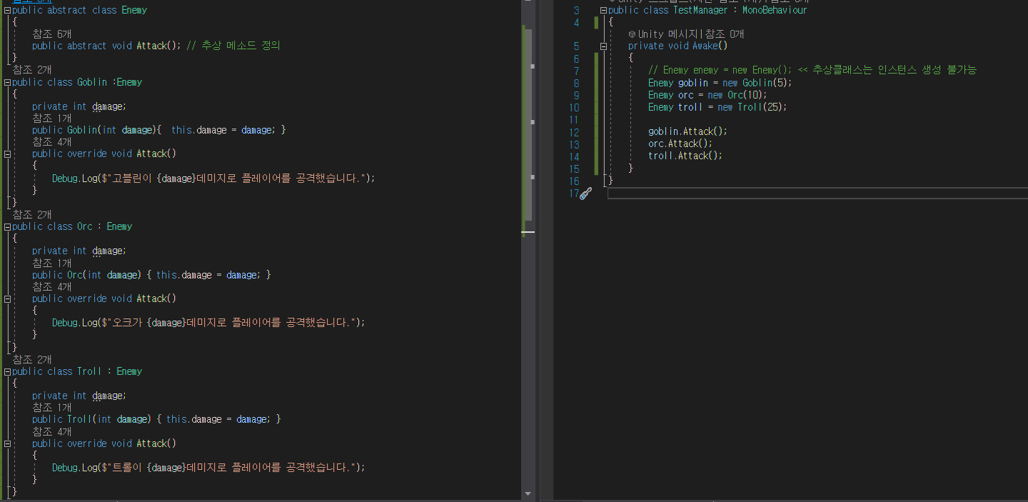 [Unity/C#] 추상클래스, 인터페이스 본문