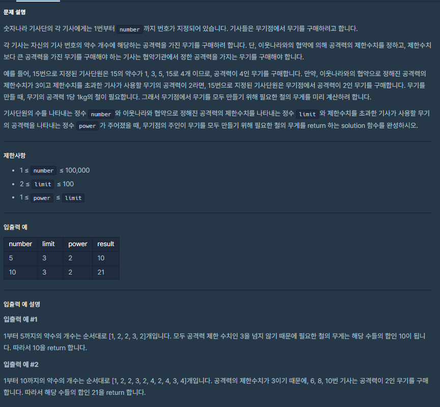[프로그래머스] 기사단원의 무기 (C++) 본문