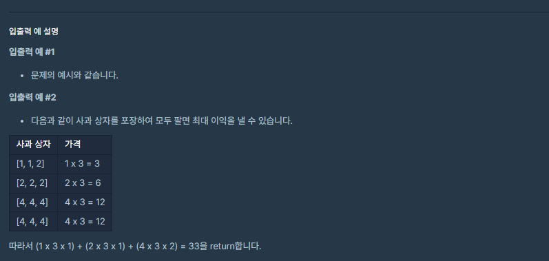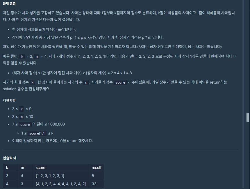 상자에 담긴 사과의 최저 점수 * m = 최대 이익