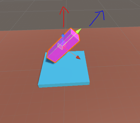 AddForce는 빨간색 방향으로 AddRelativeForce는 파란색 방향으로 이동합니다.