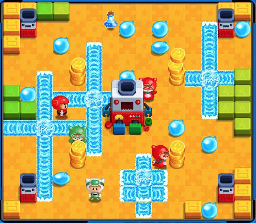 물풍선이 모두 터질 때의 맵과 각 플레이어의 생존 유무를 출력한다.