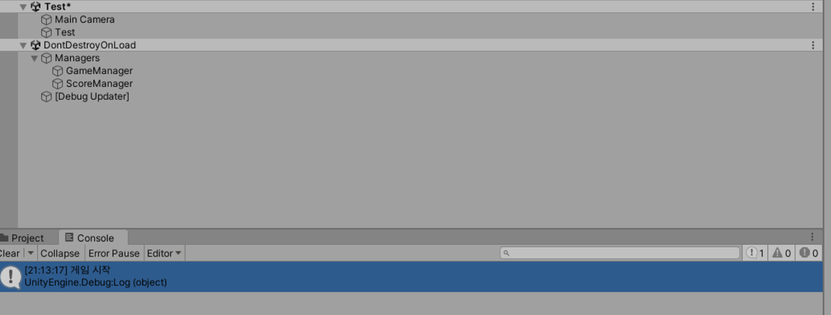 DontDestroyOnLoad(this.gameObject); // 해당 오브젝트가 최 상위 오브젝트라면 자신을 DontDestroyOnLoad 처리