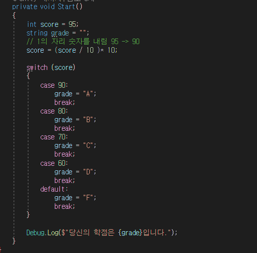 해당 코드를 switch 식을 이용하면 더 간결하게 작성할 수 있다.