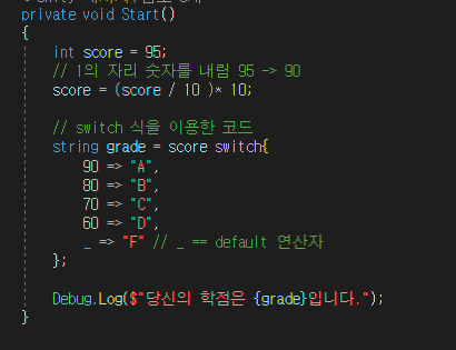 switch 문과 같은 기능을 하는 코드지만 switch 식이 더 간결하다는 것을 확인할 수 있다.