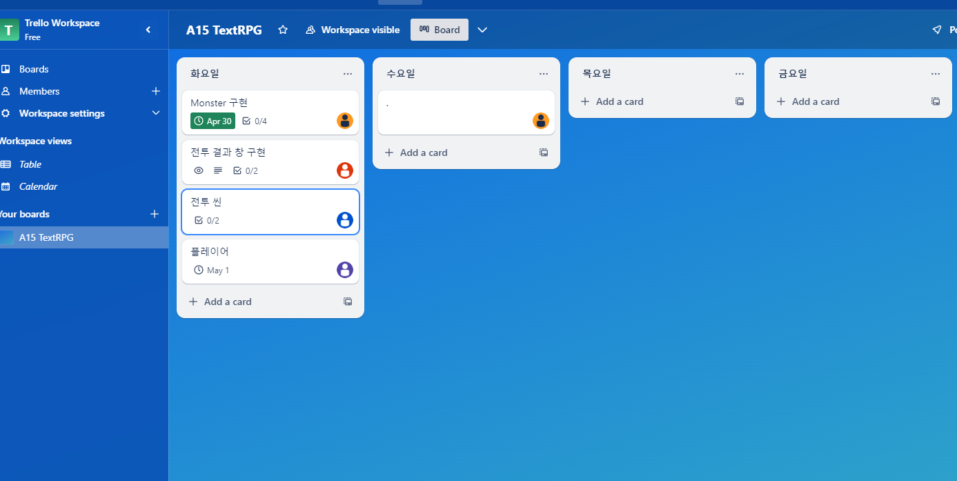 팀 일정을 쉽게 확인하기 위해 트렐로도 이용해봤다.