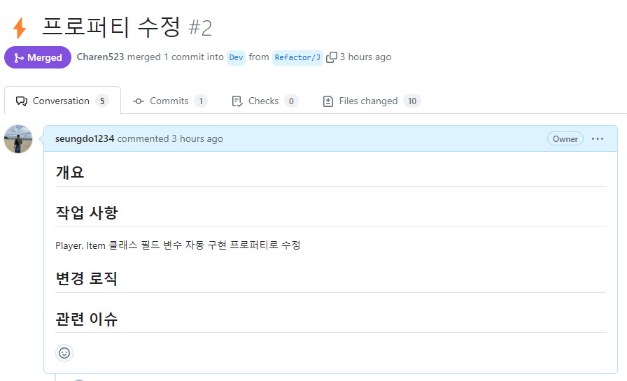 그리고 깃 이모지를 활용하여 다른 팀원들이 파악하기 쉽게 했다.