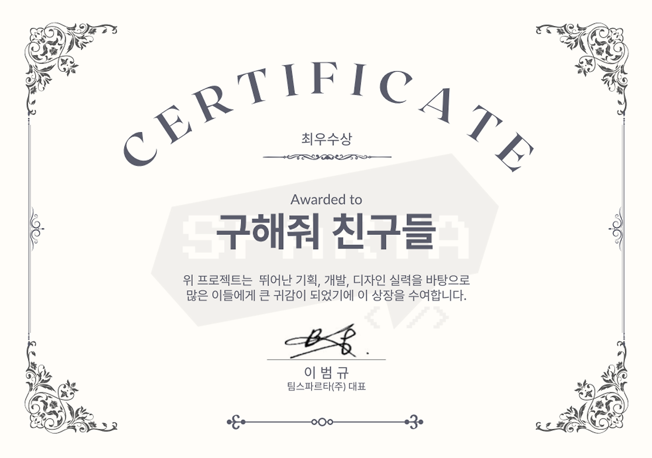 그러다 보니 좋은 결과물이 나오게 됐고 이 프로젝트를 시작할 때, 목표했던 최우수상도 받게 된 것 같다.